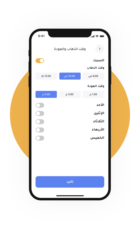 أدخلي مواعيد دوامك حسب جدولك الدراسي.